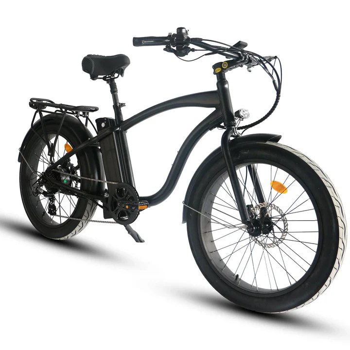 The Coastal Cruiser Step Over 24×3 52V/17Ah 750W Electric Bike is built for riders who want a perfect balance of strength, style, and all-terrain capability. Designed with a bold step-over cruiser frame and equipped with 24×3-inch fat tires, it delivers stability, traction, and confidence whether you’re navigating city streets, sandy beaches, or rugged trails. Powered by a 750W rear hub motor and a 52V/17Ah lithium battery, this e-bike offers powerful acceleration, long-lasting endurance, and smooth rides across any terrain. On a single charge, riders can enjoy up to 45–60 miles of range, making it ideal for commuting, adventure rides, or leisurely cruises by the coast.