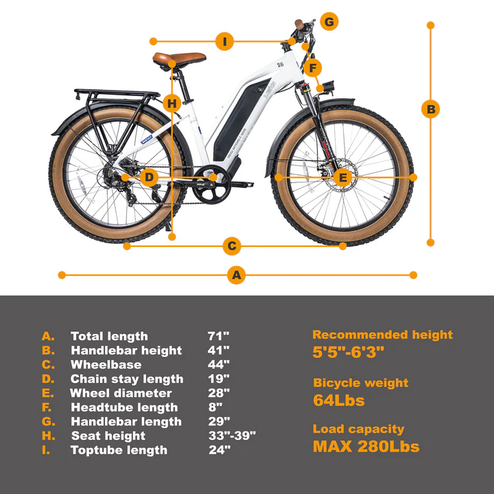 Built to thrive in any environment, the DWMEIGI Artemis features wide 26” fat tires that provide outstanding grip and stability on snow, sand, gravel, and wet roads. Its durable aluminum alloy frame combines strength with lightweight agility, while the ergonomic design ensures comfort for riders of all skill levels. Whether you’re commuting daily, exploring nature trails, or powering through challenging weather conditions, this fat tire electric bike adapts effortlessly to your lifestyle. Adventure, durability, and style come together seamlessly in the Artemis.