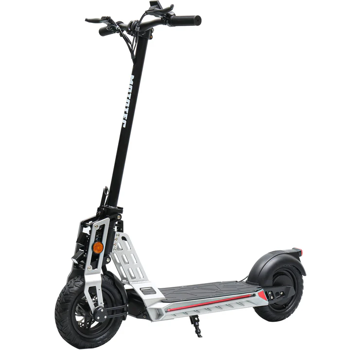Built to dominate any terrain, the MotoTec Free Ride Electric Scooter features all-terrain pneumatic tires that grip surfaces effortlessly for unmatched traction and control. Its heavy-duty steel frame ensures durability, while the dual suspension system absorbs shocks to keep every journey stable and comfortable. With front and rear disc brakes, riders enjoy superior stopping power, even in challenging conditions. The wide anti-slip deck enhances balance and confidence, allowing riders to stay secure and in command. This scooter isn’t just built to perform—it’s engineered to outlast, no matter where the road leads.